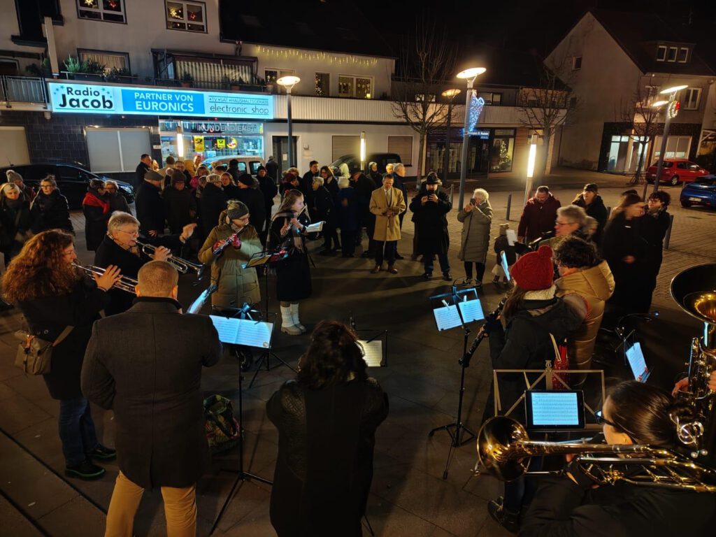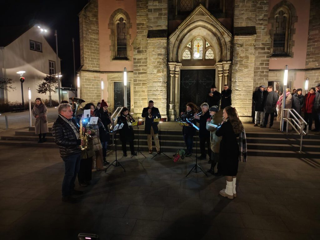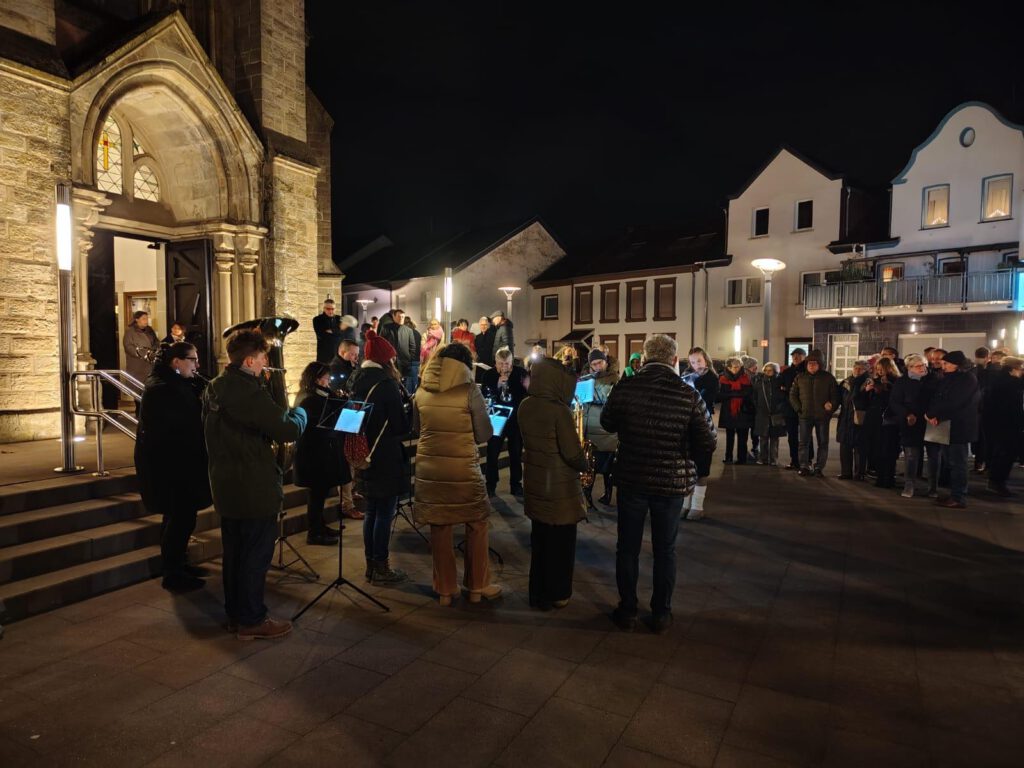 Traditionsgemäß begleiteten am 24.12.2024 die Turmbläser des Musikvereins die Heilige Messe (gemeinsam mit dem Kirchenchor Chorklang) und anschließend spielten einige Musiker/-innen des Vereins noch Weihnachtslieder nach der Messe vor der Kirche St. Maximin.