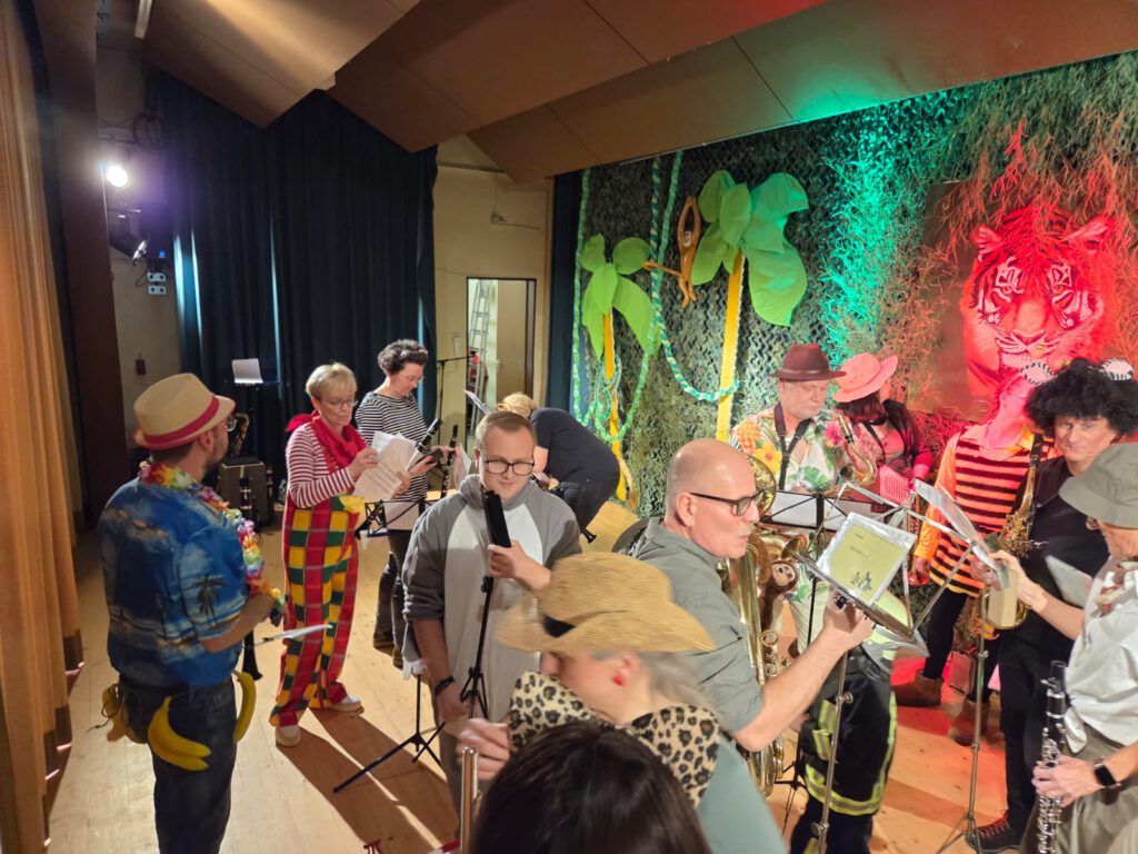 Unter dem Motto „Närrisch, wild und kunterbunt – im Dschungel geht es richtig rund“ lud die Gemeinde St. Maximin Pachten am 31.01.2026 in die Römerhalle ein. Selbstverständlich durfte da auch der MV Pachten nicht fehlen. Kunterbunt in Dschungelkostümen statteten wir der Gemeinde einen Besuch ab und kamen dabei sehr gut an. Ein Geburtstagskind war auch dabei, der ganze Saal sang für unseren Kassierer Michael Loyo ein Ständchen.