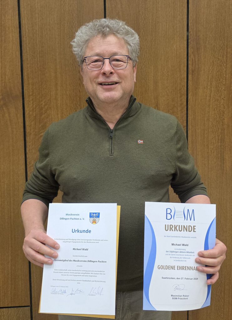 Nachdem der Musikverein kürzlich selbst ein großes Jubiläum zu feiern hatte, wurde diese Ehre nun vielen aktiven sowie inaktiven (fördernden) Mitgliedern zuteil. Auf der Mitgliederversammlung, welche am 7. Februar 2025 im Vereinslokal Hauch Knopp in Pachten stattfand, fanden Ehrungen des Musikvereins und des Bundes Saarländischer Musikvereine (BSM) statt. Für den BSM übernahm Armin Louia die Übergabe der Nadeln und Urkunden. Für den Musikverein sprach der Vorsitzende Dominik Weber den Jubilaren seine Glückwünsche aus und überreichte die entsprechenden Urkunden. Die Geehrten sind wie folgt: